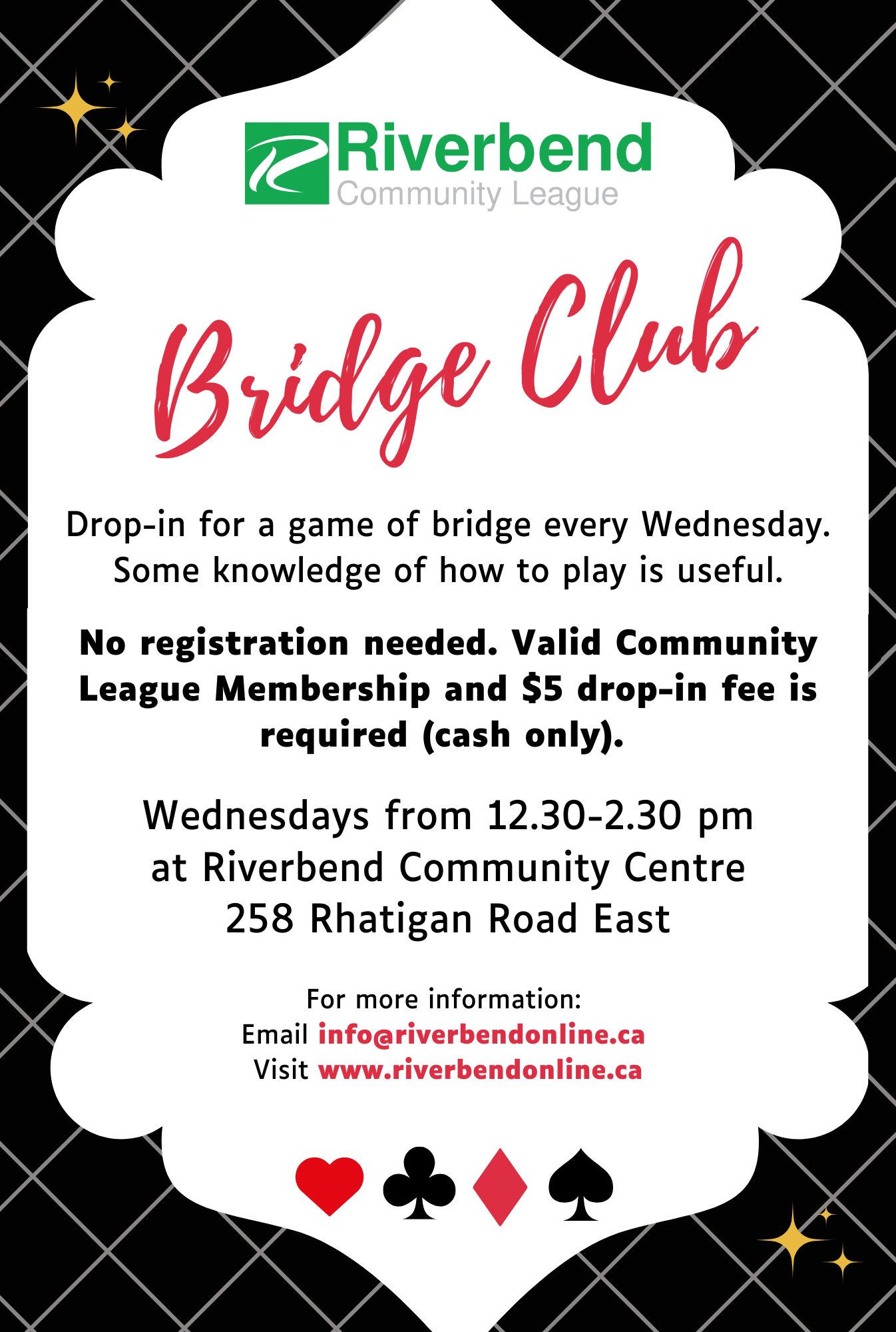 Drop-in for a game of bridge every Wednesday. No registration is needed.